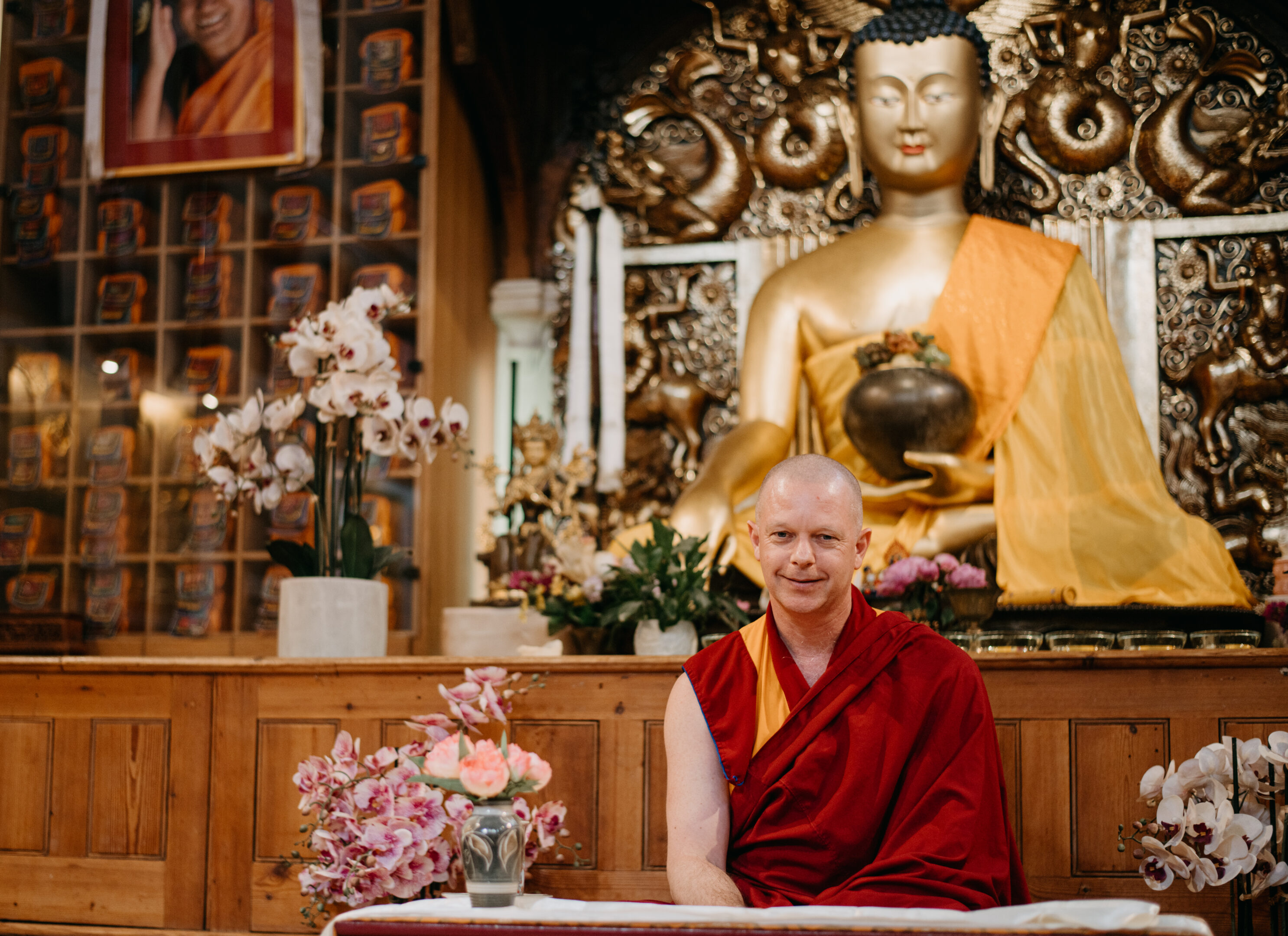 At Jamyang, he plays an active role in the spiritual and pastoral life of the community, offering guidance, support, and ceremonial leadership.