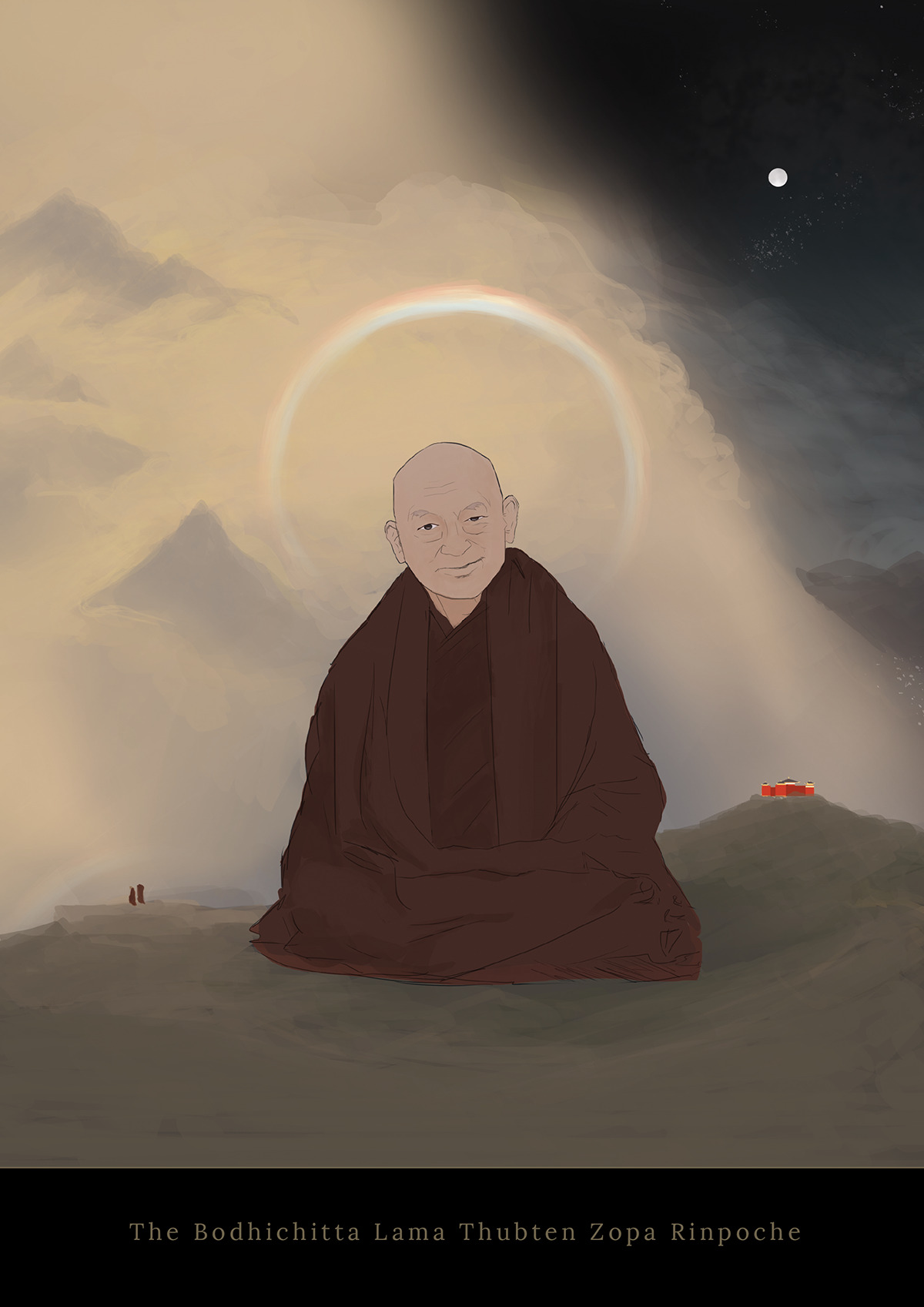 Thanks to the generosity of Dominique Briggs, a talented artist deeply devoted to Lama Zopa Rinpoche, this stunning piece is now offered as a complimentary postcard at the Jamyang London Buddhist Centre for all of you to cherish